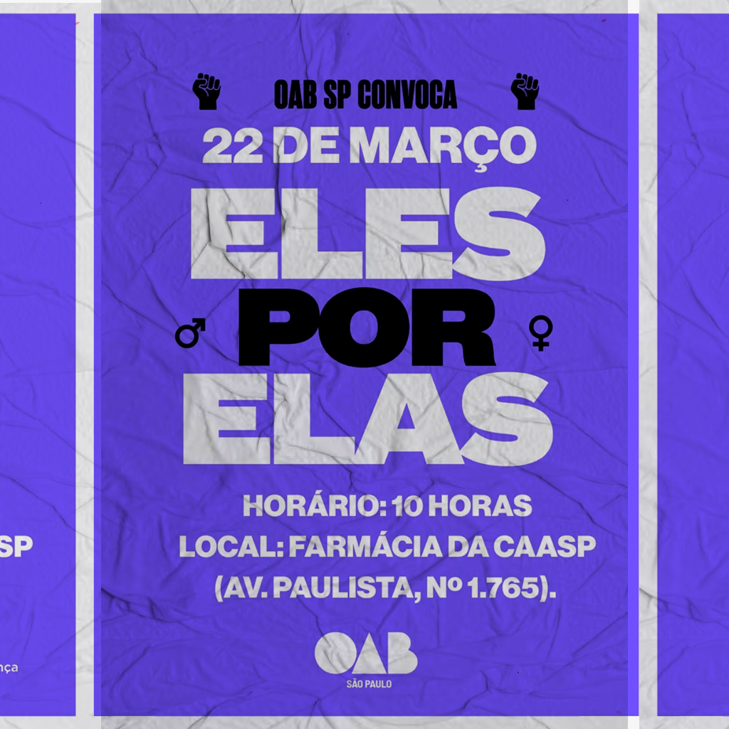 Convidamos a advocacia e toda a sociedade para participar da campanha Eles por Elas, uma caminhada de conscientização que propõe o engajamento de homens na luta contra a violência de gênero.