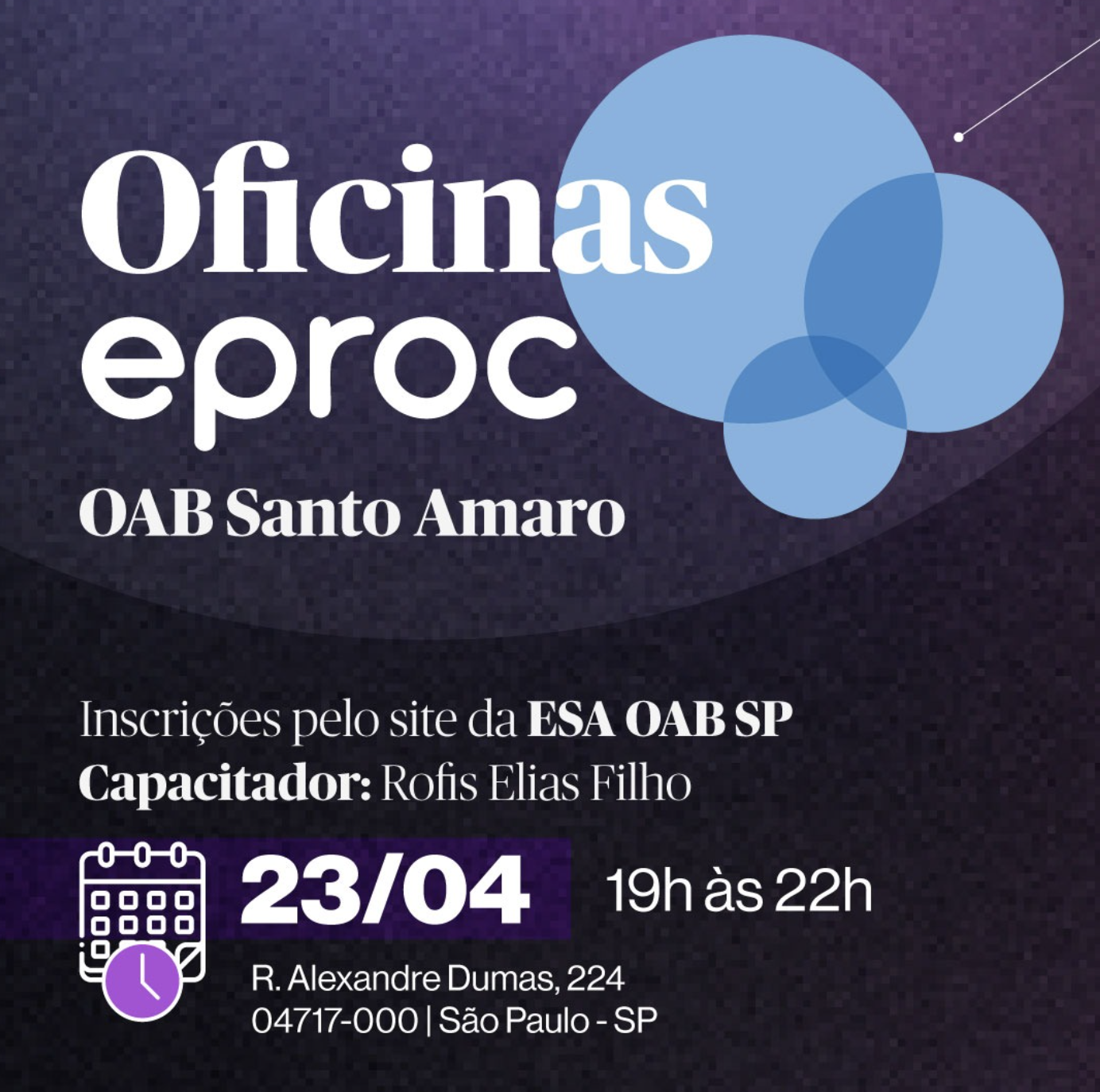 A Escola Superior de Advocacia convida para a Oficina Eproc – 2ª Turma, voltada ao aprimoramento prático no sistema.