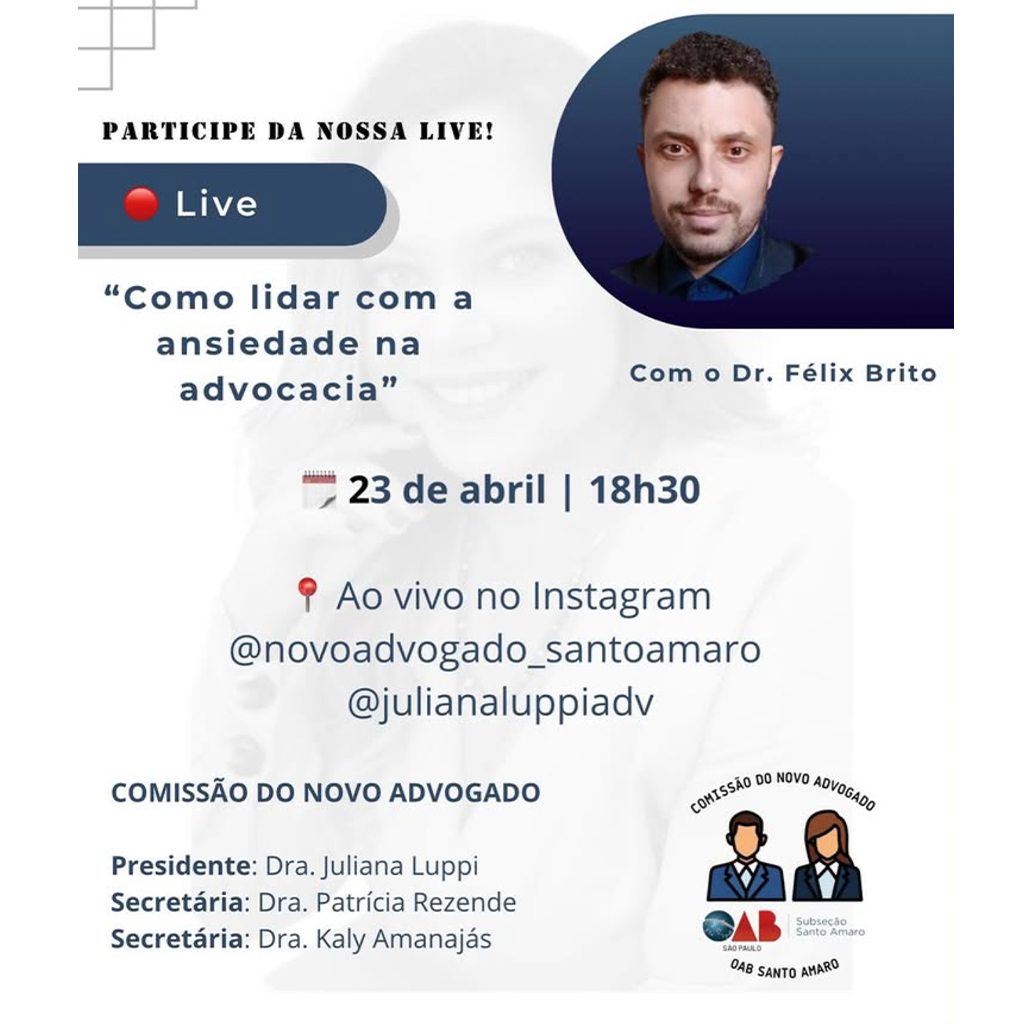 📍 Onde: Ao vivo aqui no Instagram @novoadvogado_santoamaro e @julianaluppiadv