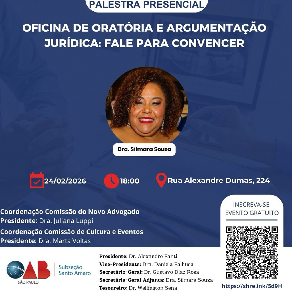 ❇️ Sob a condução da Dra. Silmara Souza, Secretária-Geral Adjunta da OAB Santo Amaro, você aprenderá como usar a palavra como instrumento de convencimento, influência e credibilidade no tribunal, na audiência, na sustentação oral e na vida profissional.