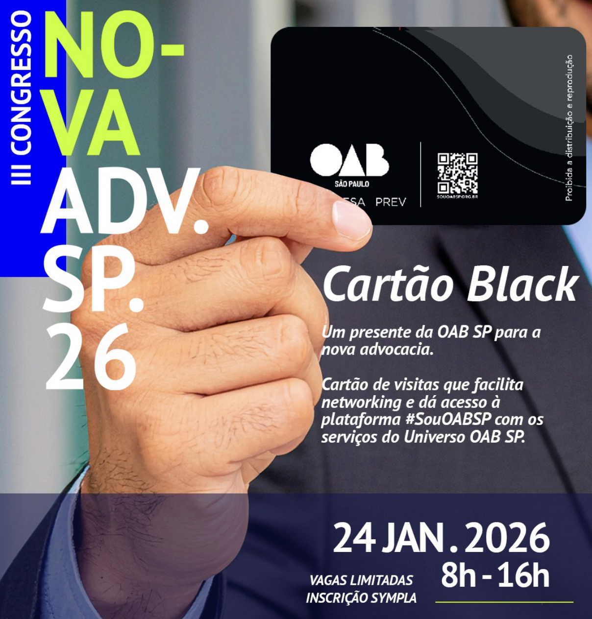 Não é apenas para a nova advocacia! Todos os participantes do congresso poderão confeccionar seu Cartão Black da OABSP de forma totalmente gratuita durante o evento.