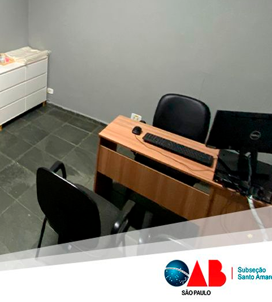 Localizado no térreo da 102ª Subseção de Santo Amaro, espaço pensado e indicado para advogadas (os) acompanhados de seus filhos (as), na rotina de trabalho, servindo a sala como uma forma de acolher a advocacia nessa necessidade de conciliação do trabalho com o cuidado da família. A sala é equipada com computador (sem webcam), ar-condicionado, cadeiras para atendimento, trocador para crianças que usam fraldas, cadeira de aleitamento, TV, DVD e filmes infantis, mesa de recreação para as crianças maiores e brinquedos lúdicos.
