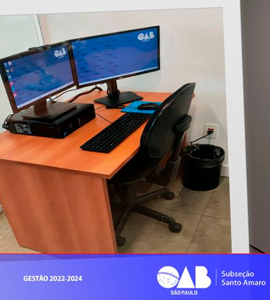 A sala conta com ar condicionado, computador, webcam e headset.